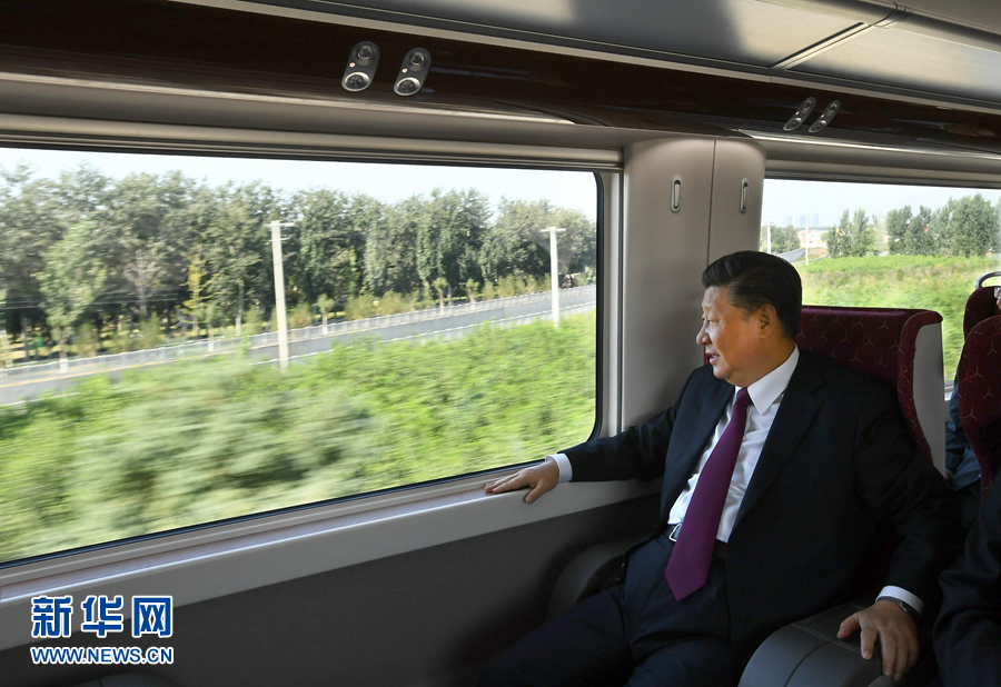 9月25日上午,北京大興國際機場投運儀式在北京舉行。中共中央總書記、國家主席、中央軍委主席習近平出席儀式,宣布機場正式投運并巡覽航站樓。這是習近平乘坐軌道列車前往北京大興國際機場。 新華社記者 謝環(huán)馳 攝