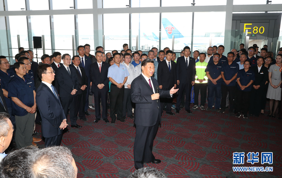 投運儀式在機場聯(lián)檢大廳舉行。11時許,伴隨著歡快的迎賓曲,習近平等步入儀式現(xiàn)場,全場起立鼓掌。