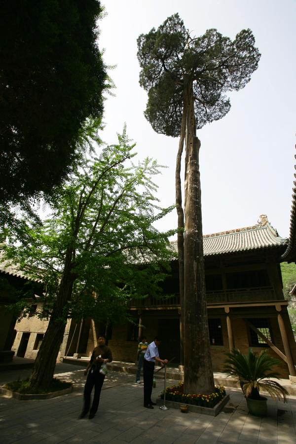 千年銀杏:在“子抱母”古柏之前,有根杏樹(俗稱白果樹)兩株。東為雄樹,樹徑5米,高約2.5米;西為雌樹,樹徑4米,高與雄樹相當(dāng)。銀杏樹雌異株,成活率極低,果實(shí)青白色,為珍貴藥材。這里的兩株大樹,每年夏秋兩季枝葉繁茂,遮天蔽日,雌樹還可收獲白果百余斤,既點(diǎn)綴了風(fēng)景,又生產(chǎn)了藥材,真可謂一舉兩得。