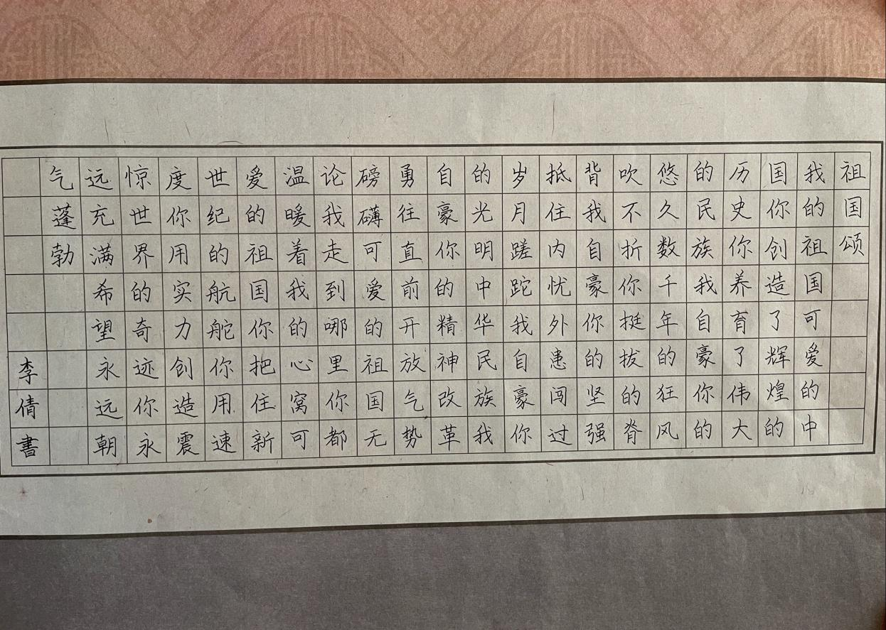 此次活動得到了全體人員的積極響應(yīng)與支持,共收到作品30副,他們字體不一、各具特色、形神兼?zhèn),或蒼勁有力,或雋永飄逸,或清秀雅致,或端正整潔………筆走龍蛇之間蘊含了全體人員對祖國母親的熱愛、對偉大祖國的深深祝福。經(jīng)專業(yè)、公正評審,評出一等獎一名,二等獎兩名,三等獎三名。