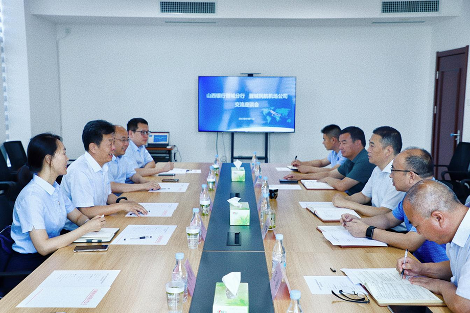 7月11日上午,山西銀行晉城分行行長張建國一行與機(jī)場公司舉行交流座談會議,了解機(jī)場進(jìn)展和投資建設(shè)模式,雙方就銀企合作等方面進(jìn)行了深入交流。