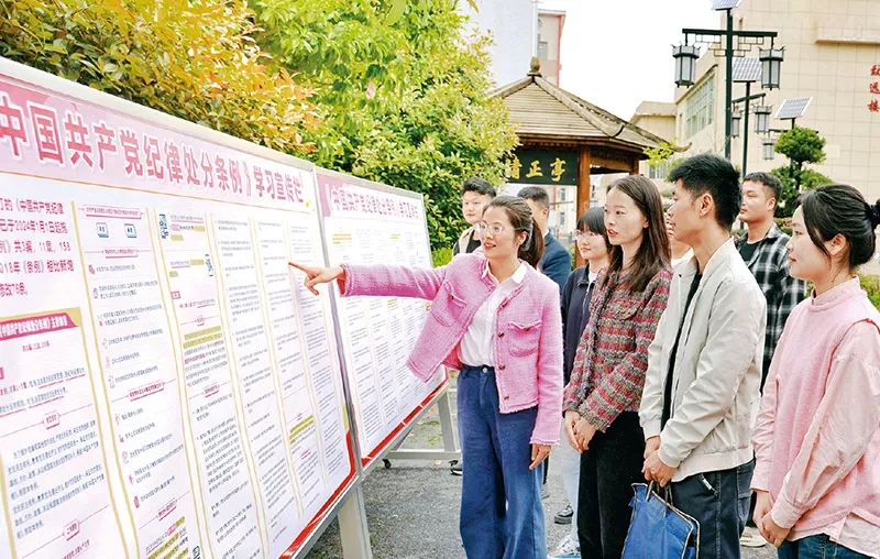 在全黨開展黨紀(jì)學(xué)習(xí)教育,是加強(qiáng)黨的紀(jì)律建設(shè)、推動全面從嚴(yán)治黨向縱深發(fā)展的重要舉措。連日來,各地區(qū)各部門各單位精心謀劃部署、抓住學(xué)習(xí)重點(diǎn),推動黨紀(jì)學(xué)習(xí)教育走深走實(shí)。圖為2024年4月10日,江西省蘆溪縣紀(jì)委監(jiān)委干部在《中國共產(chǎn)黨紀(jì)律處分條例》學(xué)習(xí)宣傳欄前交流。 鄧建萍/攝